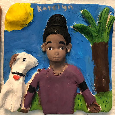In art, 5th grade students began the year by exploring their identities and creating a clay relief self-portrait. Students added aspects of their identity in their clothing and background. The finished portraits are now on display in the hallway for future Ocelots to enjoy!